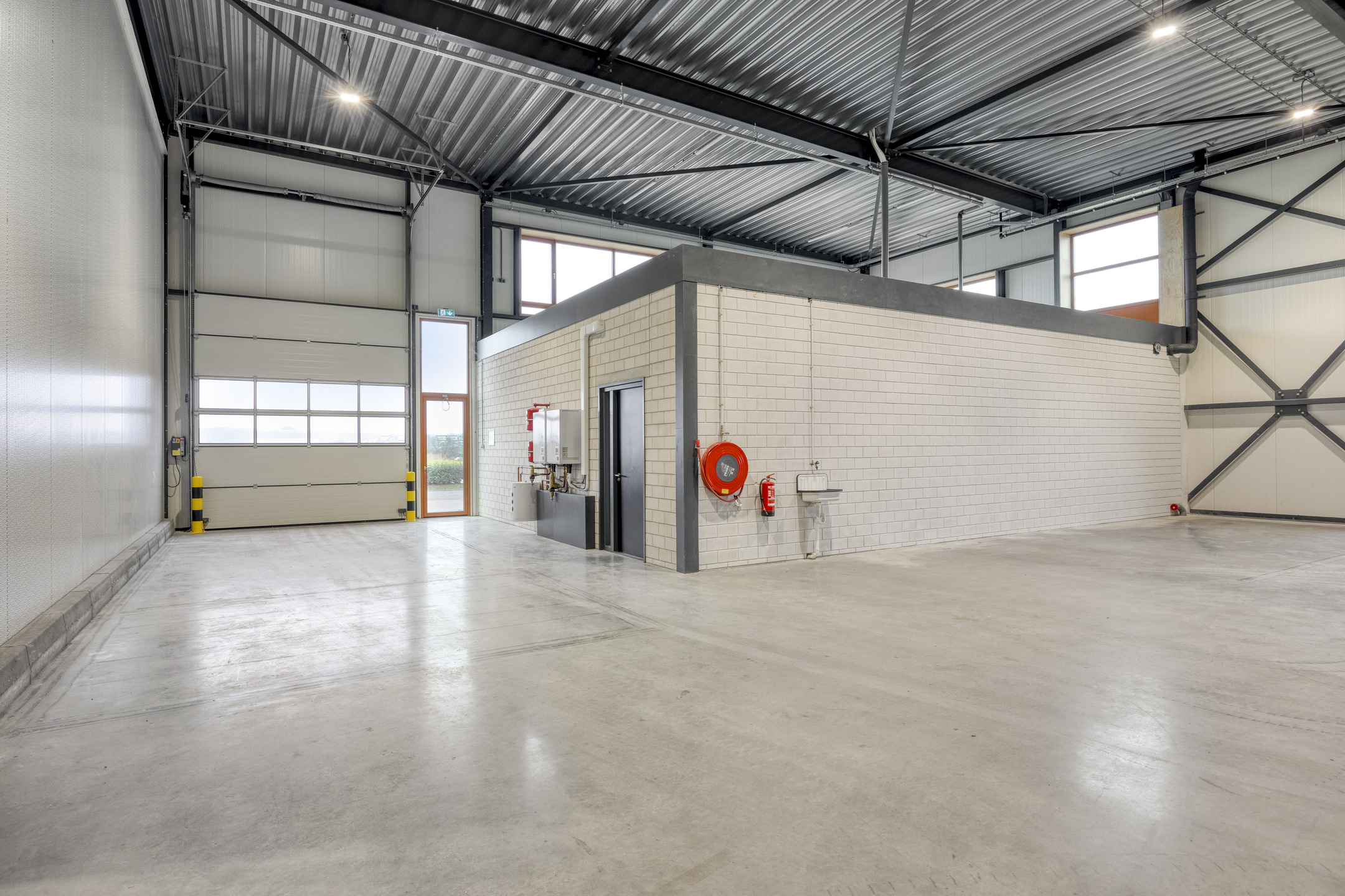 De bedrijfsruimte is voorzien van volledige camerabeveiliging op het terrein, vrije hoogte circa 7,5 meter, betonvloer met vloerverwarming middels warmtepomp, vloerbelasting maximaal 2.500 kg/m², 2 grote elektrisch bedienbare overheaddeuren op maaiveldniveau, krachtstroom stopcontacten 380 V., LED-verlichting. De kantoorruimte beschikt over vloerverwarming, luchtcirculatie en airconditioning middels een warmtepomp, LED-verlichting, databekabeling (collectieve glasvezel Internet 1Gbit), pantry met koelkast en vaatwasmacine, zelfstandige entree, keramische zandsteen vloertegels, garderobe en toilet.