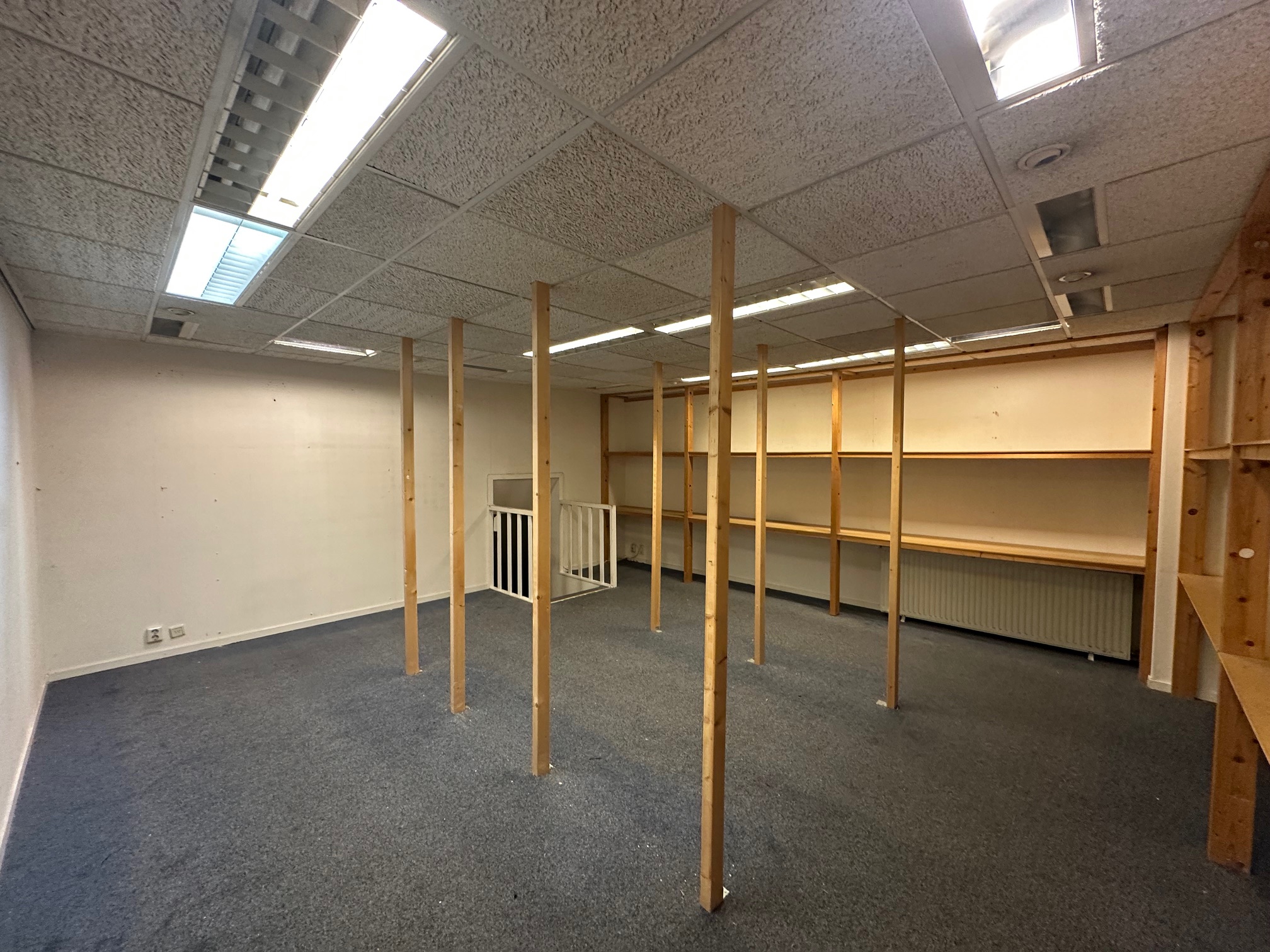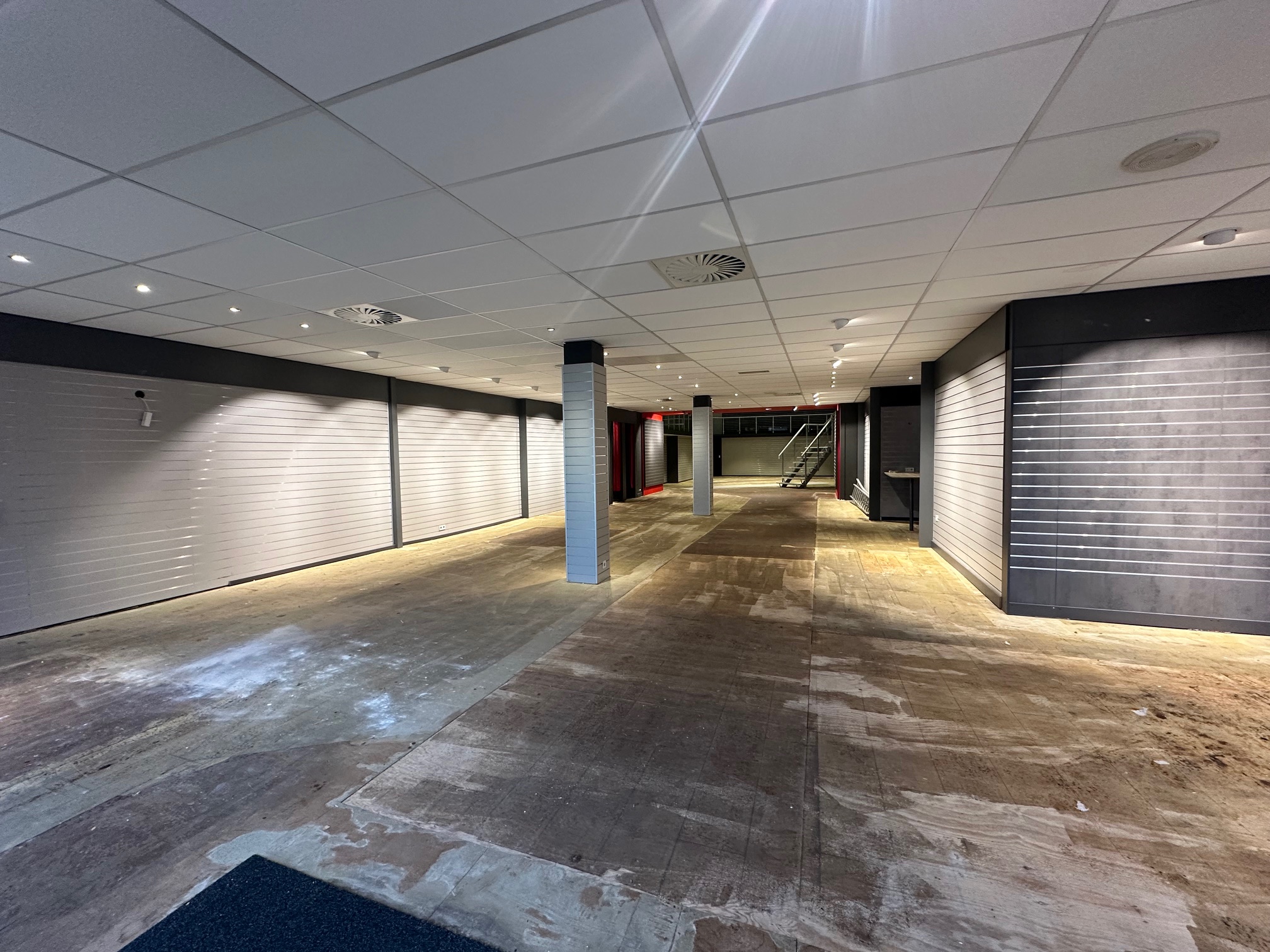 De ruimte is voorzien van automatische schuifdeuren, net plafond (deels systeemplafond), verlichting en verwarming middels een CV-ketel.
